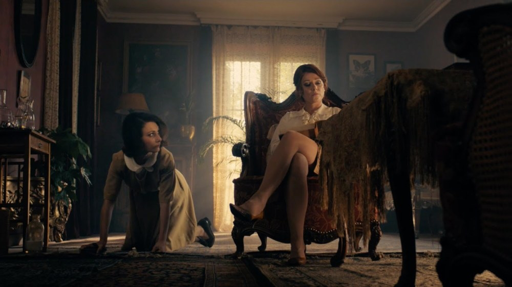 Desire is fundamentally performative, an aspect of romance explored within this film’s representation of sadomasochism. The film initially presents Cynthia as a domineering house mistress berating her cleaning lady Evelyn, only to suddenly reveal that Cynthia is actually privately reading cue cards that instruct her how to dominate. Thus, Cynthia is performing a fantasy scripted by Evelyn, an inversion in which the apparent dominatrix is actually the one working hardest to please her partner and match her desires. As the relationship progresses, both women struggle to maintain their respective roles. Cynthia starts to worry that Evelyn loves the fantasy more than her real self, with Evelyn growing frustrated when Cynthia fails to perform the scenario convincingly. The Duke questions if love is more about sustaining a shared fiction or fantasy.